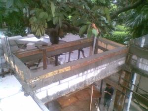 Saya mau tinggikan sampai 3,5 m. Otomatis saya harus tambah ketinggian tembok dari2,8m ke 3,5m. Kemudian buat balok beton dengan tebal 17cm sebagai tumpuan panel lantai nya.
