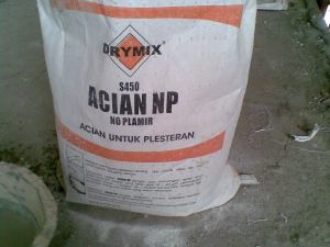 Drymix ada juga yg buat acian beton. masuk akal kan..beton itu lebih halus..jadi perlu acian yang lebih lengket..alias harga lebih mahal..sekitar 30 ribu lebih mahal dari acian buat dasar plaster. karena lagi habis, gw pake aja acian buat beton tapi hasilnya warna abu2..dari AM..soalnya juga lagi diskon..aslinya 102 ribu per 40 kilo..sekarang lagi 85 ribu..cihuy beli 10 zak deh..buat ngaci topi jendela plus tangga.